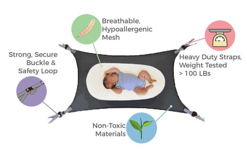 This hammock promotes healthy baby development and takes away dangers to an infant. Safe and comfortable for all infants Reduces risk of flat head syndrome Softer air-like property for your baby to rest.