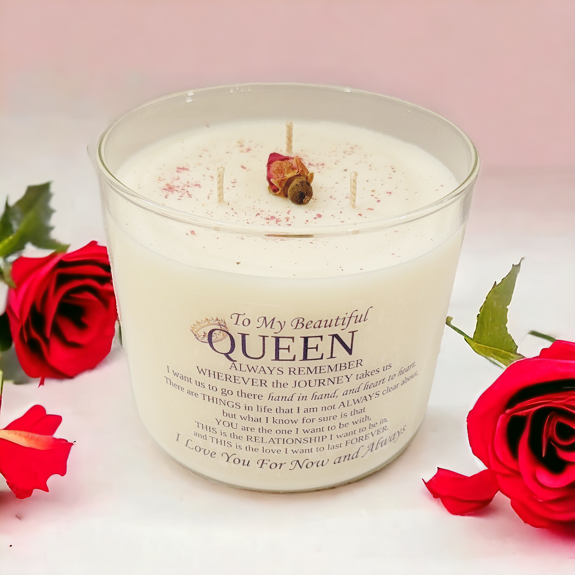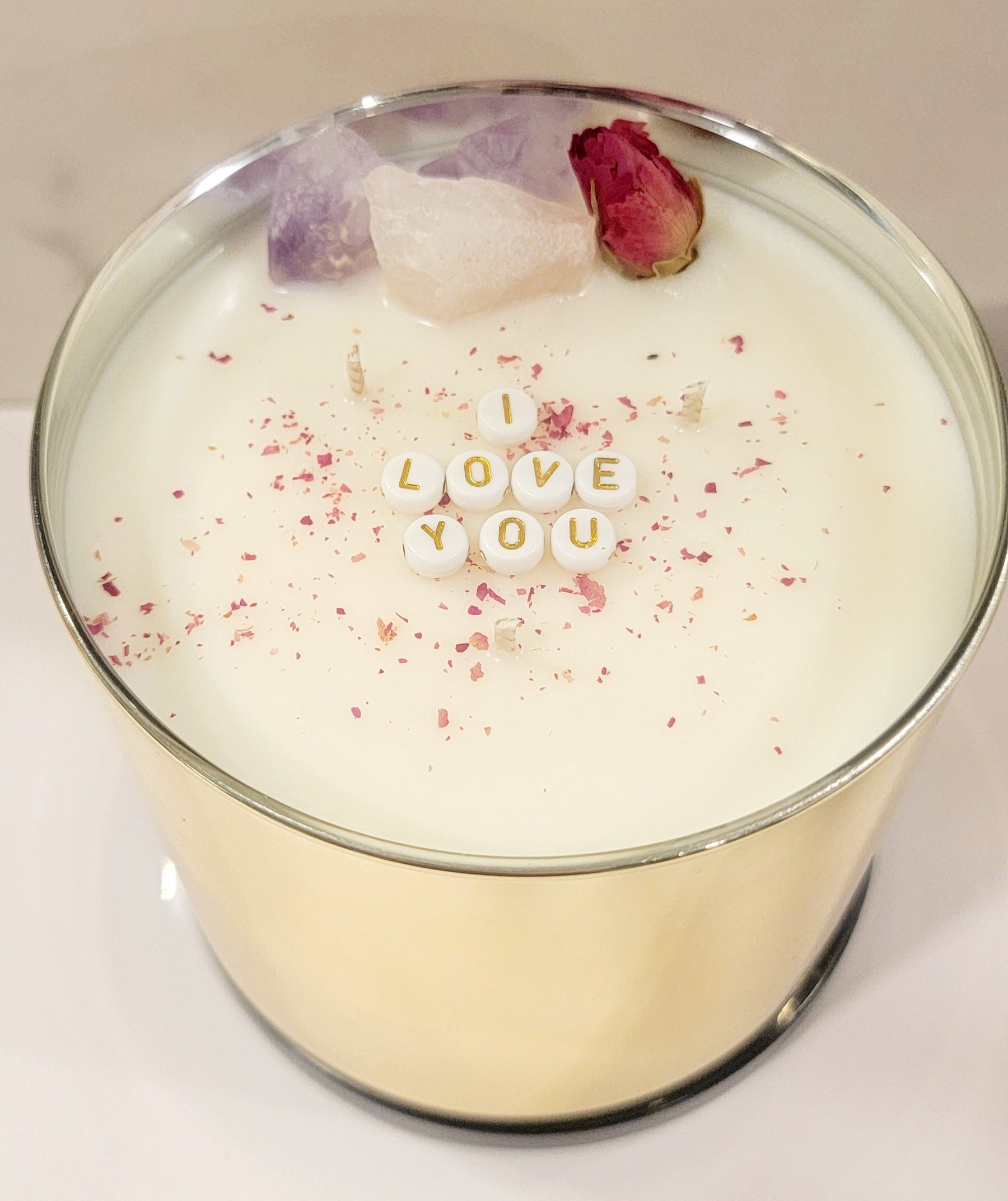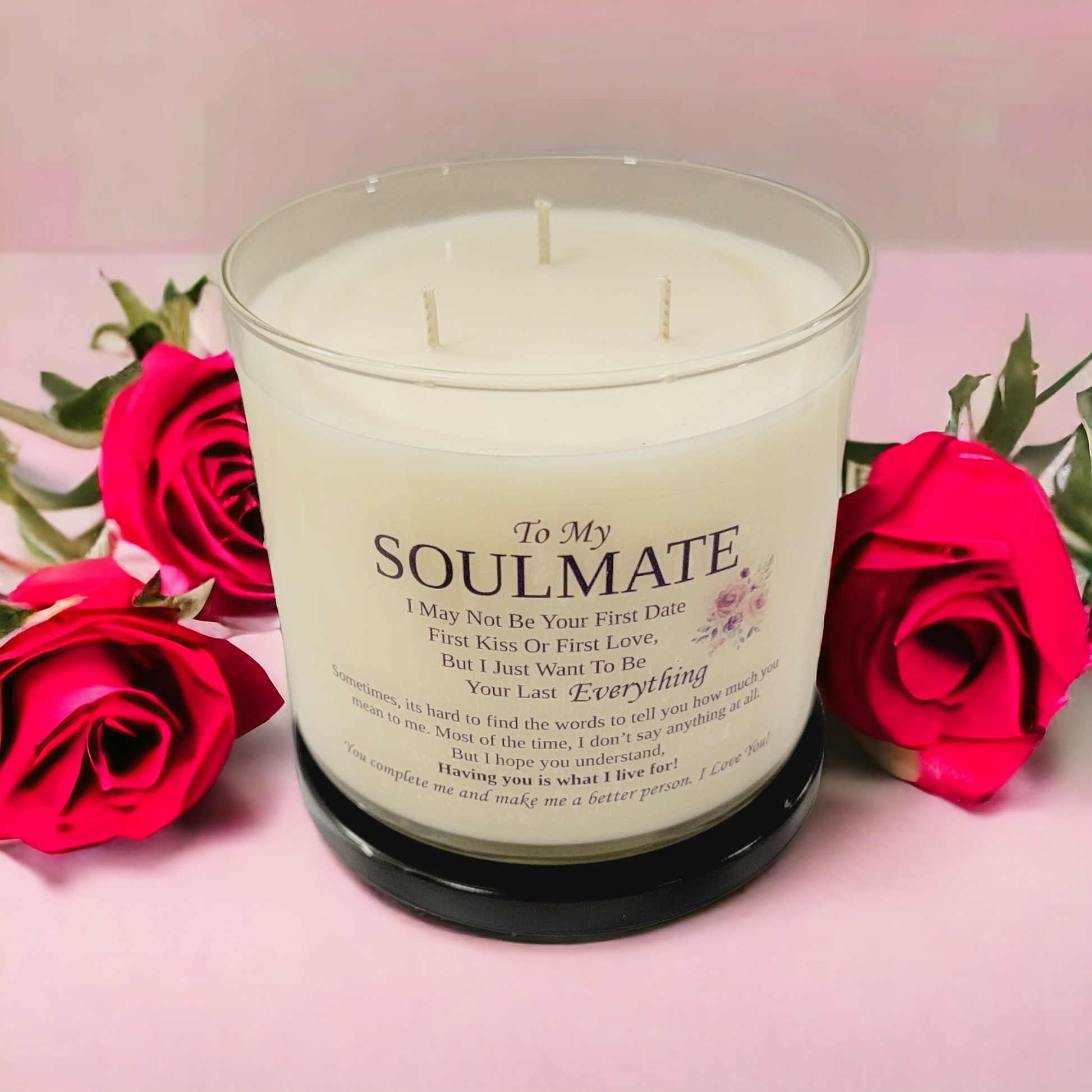 Introducing our "Lover's Lullaby" scented candle - a delicate blend of rose 🌹 petals and warm lavender that creates an ambiance of intimate, romantic tranquility. As you light this candle, let the soft flickering flame accompany the heartfelt 💖message inscribed on the glass jar.